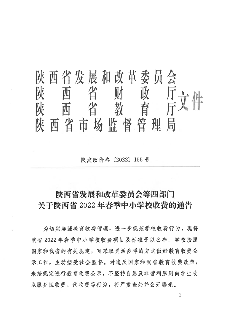 转发《关于陕西省2022年春季中小学校收费通告》的通知
